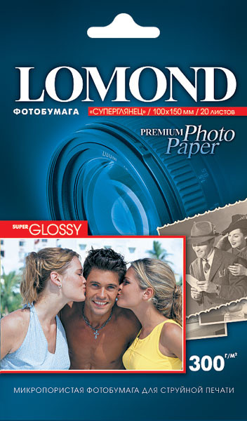 Фотобумага Lomond 1109101 супергл. ярко-белая микропористая для струйной печати, A6, 300г/м2, 20л.