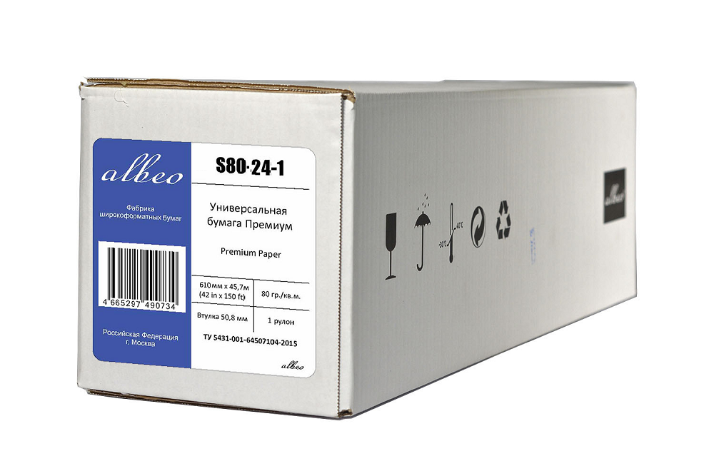 Бумага Albeo InkJet Paper, универсальная, втулка 50,8мм, 0,610 х 20 526.00 10 520.00 45,7м, 80 г/кв.м, аналог HP Q1396A, XEROX 450L90002/450L90504 (Z80-24-1)