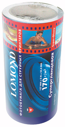 LOMOND Super Glossy Premium Photo Paper, 127мм50,8мм, 170 гм2, 8 метров. Микропористое покрытие полуглянцевой фотобумаги Lomond для струйной печати средней плотности для печати фотоизображений высшего качества с разрешением до 5760 dpi на принтерах, использующих водорастворимые и пигментные чернила. Себестоимость отпечатков на бумаге Lomond Premium Photo – ниже, чем стоимость отпечатков, получаемых по традиционной технологии с использованием химических реактивов. Благодаря полиэстеровому покрытию бумажной основы бумага Lomond Premium Photo совершенно не подвержена короблению после прохода через принтер даже при самой интенсивной «заливке» чернилами. Модификация Super Glossy по фактуре поверхности наиболее близка к традиционной «химической» фотобумаге. Отпечатки отличаются высоким глянцем. Применение: для печати фотореалистических изображений с разрешением до 5760 dpi на принтерах, использующих водорастворимые и пигментные чернила.