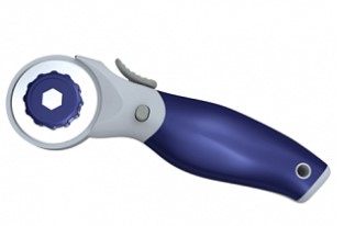 Роликовый нож( с круглым лезвием) , диаметр лезвия 45мм, цвет - серо-синий, пластиковая ручка, KW-t