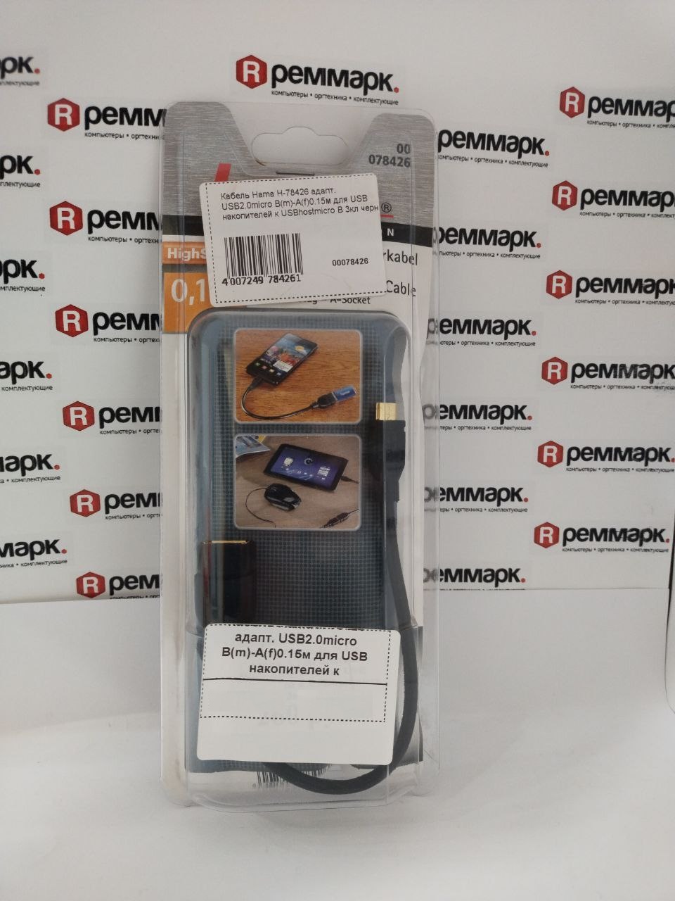 Кабель Hama H-78426 адапт. USB2.0 micro B(m)-A(f)0.15м для USB накопителей к USBhostmicro B 3кл черный. Представляет собой - USB адаптер для подключения клавиатуры, флэш накопителя, мышки к мобильным устройствам с разъемом USB micro-В, USB miсro-B может встречаться у сотовых телефонов, смартфонов, коммуникаторов, фотоаппаратов (например, Archos 7 Home Tablet, Samsung Galaxy SII).