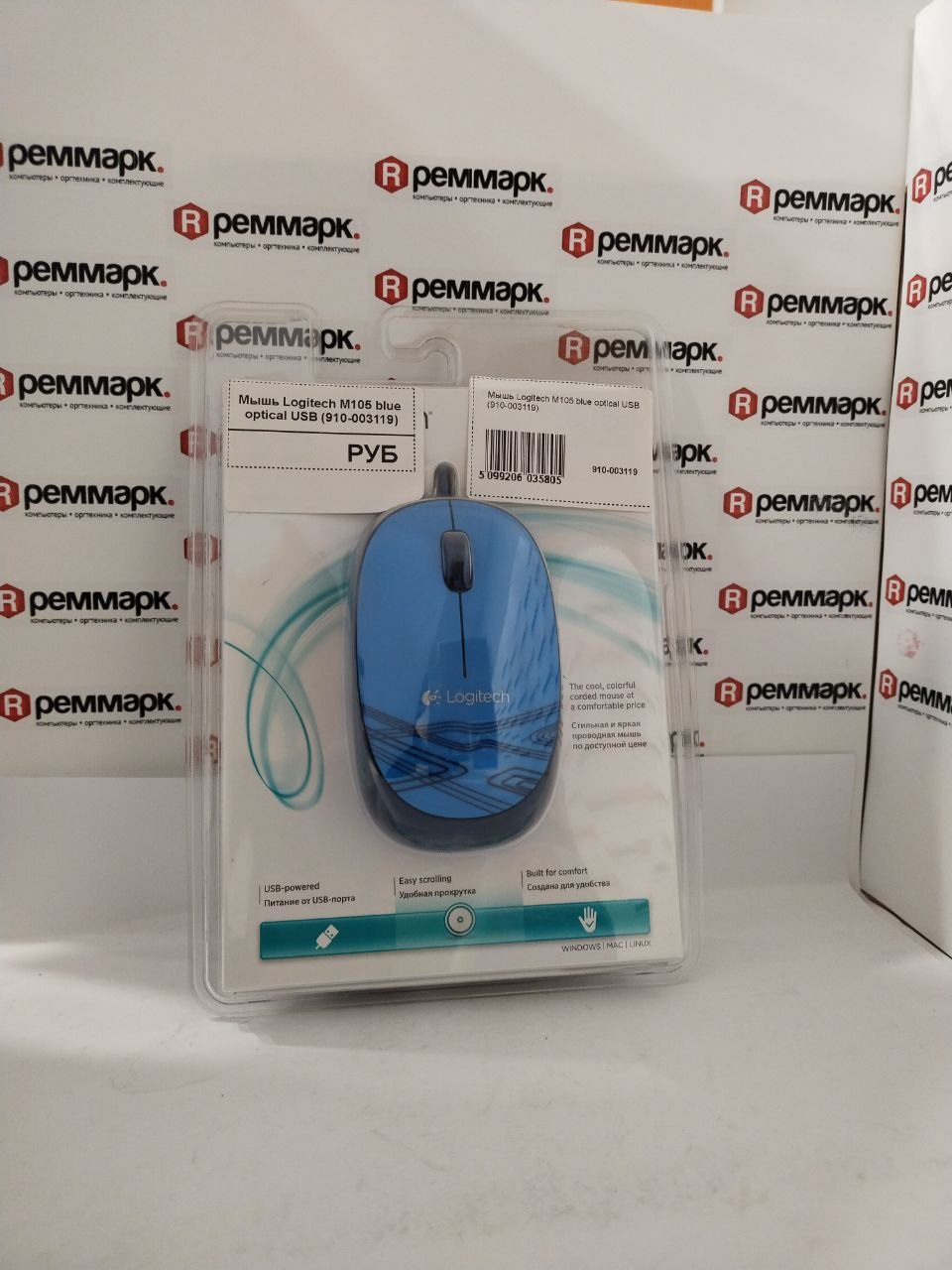 Мышь Logitech M105 blue optical USB (910-003119). Проводная оптическая мышь LOGITECH M105 (910-003119) является превосходным девайсом дома и в офисе. Она подойдет пользователю, которому привычно держать мышку в правой руке или левой – эта модель универсальна. У нее удобная форма и стандартный набор функций: две кнопки мыши, колесо прокрутки. Это также интерфейс, который понятен и доступен всем. Связь с основным устройством осуществляется по кабелю USB. Чувствительность датчика достигает 1000 dpi, это отличный режим для скоростной работы и смены деятельности.